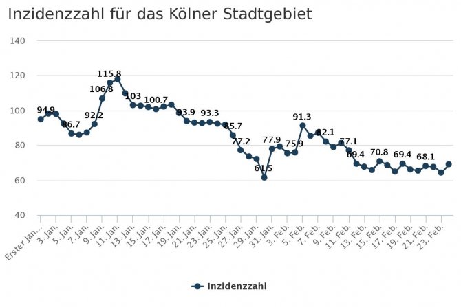 Die Inzidenzzahl liegt bei 69,1